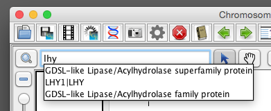 *Notice that you will see a few suggestions, but the most relevant one is not on top. The actual "LHY" gene is sandwhiched in the middle of the suggestions (See screenshot). Which one will IGB go to if a user hits enter?