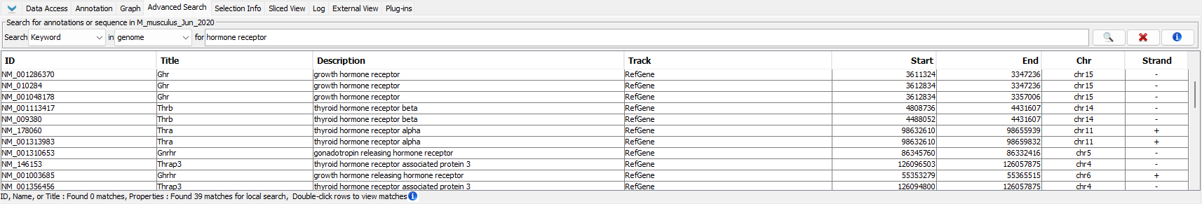 • Also important to point out that search only works if the data are loaded. I.e. if I have loaded my annotation data for chr1 but do a search for a gene on chr2 (assuming chr2 data has not been loaded), then no results will be returned. This has tricked users in the past.