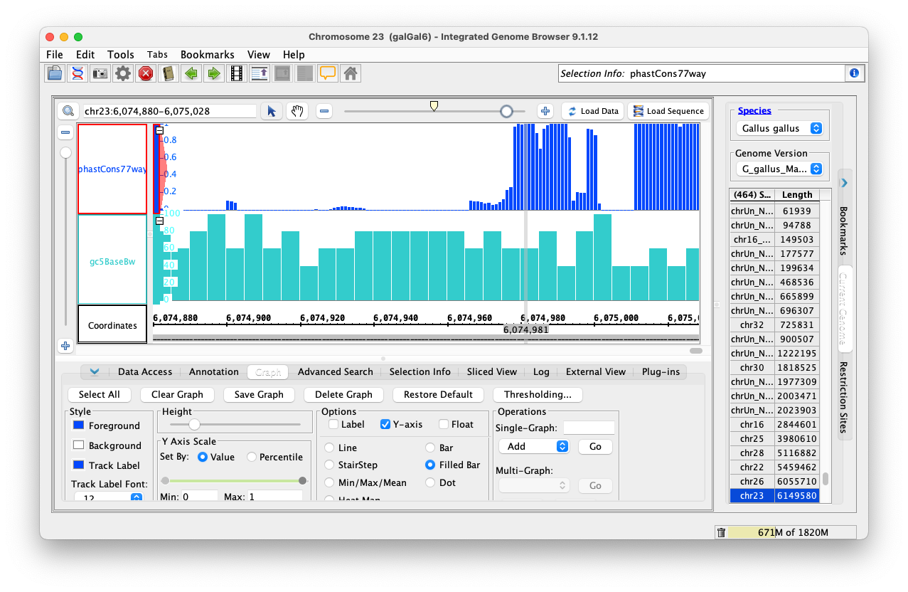 Implemented the code to load the wiggle format files (both bigWig and wig formats), and used existing GraphIntervalSym to load the syms. Testing is also done, working as expected. Didn't add the wigMaf file format as it's a bit different from the wiggle file formats: https://api.genome.ucsc.edu/getData/track?genome=hg38&track=multiz100way&chrom=chr1&start=8372&end=33172, Nowlan Freese Could you please check this format once and let me know whether it's okay to treat it as a wig format.