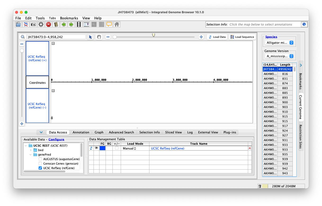 Task: Investigate if we can check to see if a genome version is not being provided by IGB Quickload. If it is not, but the UCSC REST genome annotation is available (RefGene, for example), load the UCSC REST annotation.
